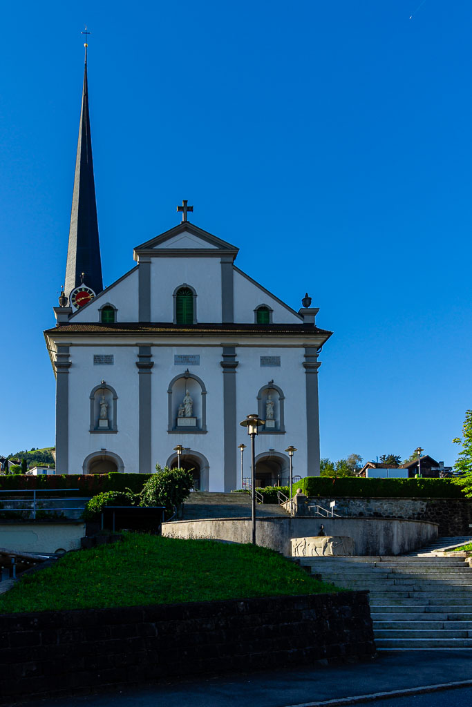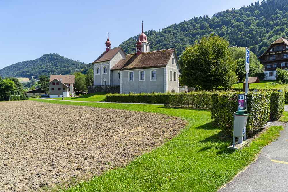 Die Sentikirche (St. Jakob im Sentimatt) liegt ca. 400m vom Jakobsweg entfernt direkt bei der Standseilbahn zum Gütsch und ist nicht ausgeschildert. Es gibt keinen Pilgerstempel.