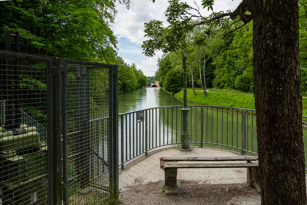 die uns nach rechts weist. Wir folgen dem Verlauf des Weges entlang der Kleinen Isar bis zur Corneliusbrücke.