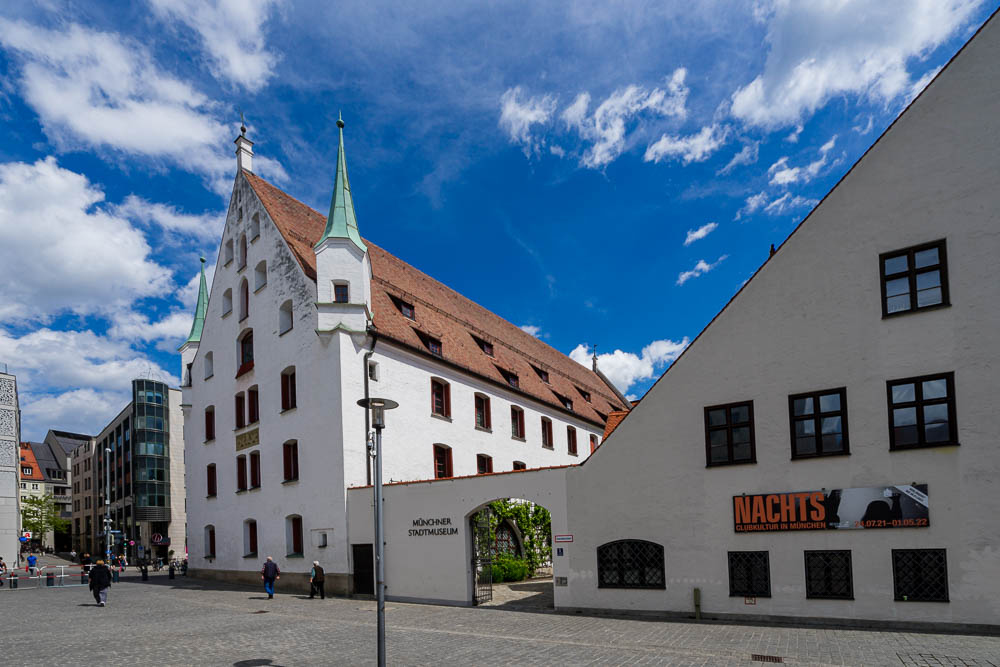 biegen an ihrem Ende nach rechts zum Deutschen Museum ab. Ein Stück geradeaus und dann gehen wir, noch vor der Boschbrücke, nach links durch einen Torbogen in den Museumshof. Im Innenhof sehen wir links die Bibliothek