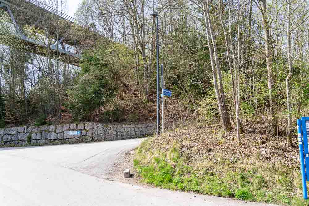 Aufmerksamkeit bedürfen. So führt der Weg etwa 20 m vor der Grosshesseloher Brücke nach rechts den Höllererberg hoch. Die Wegmarkierung dazu ist