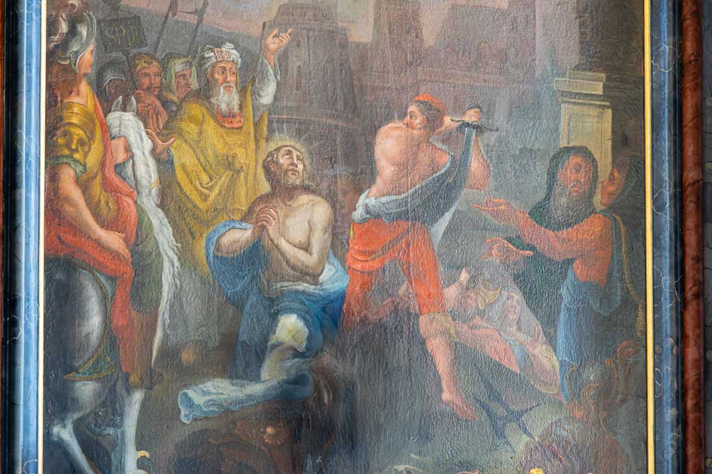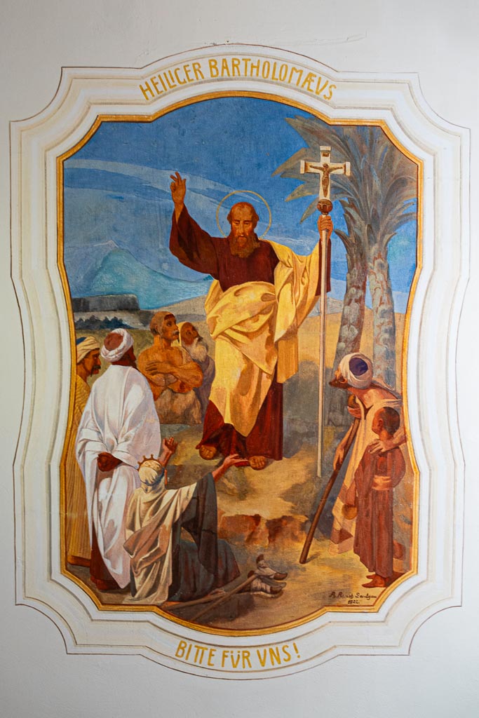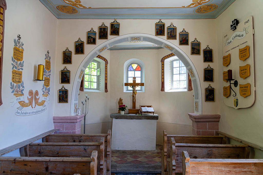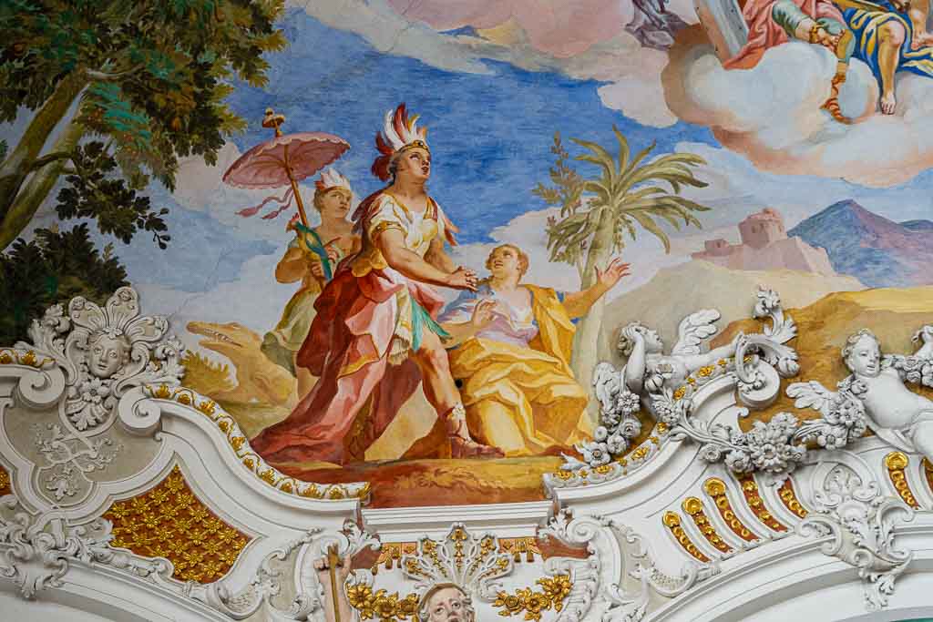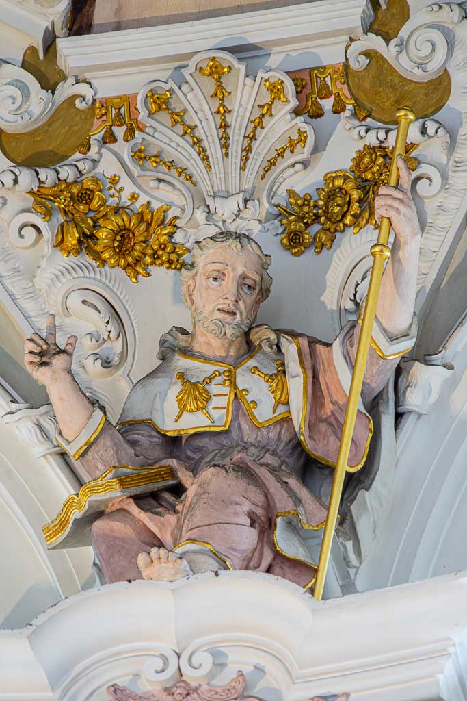 Steinhausen, Wallfahrtskirche St. Peter und Paul (offen, Pilgeraufkleber).