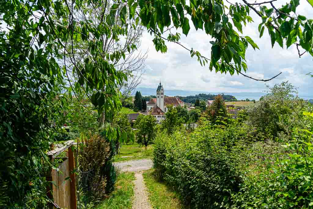 Der Westweg (Hauptroute) führt von Brochenzell weiter nach Markdorf.