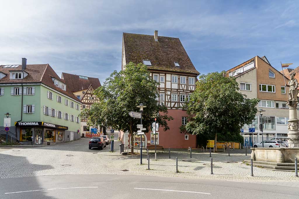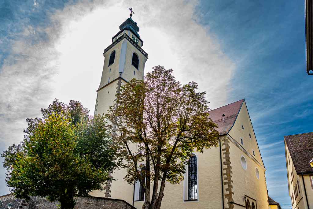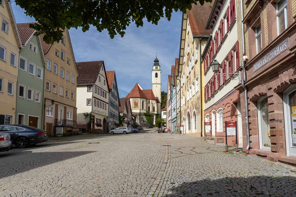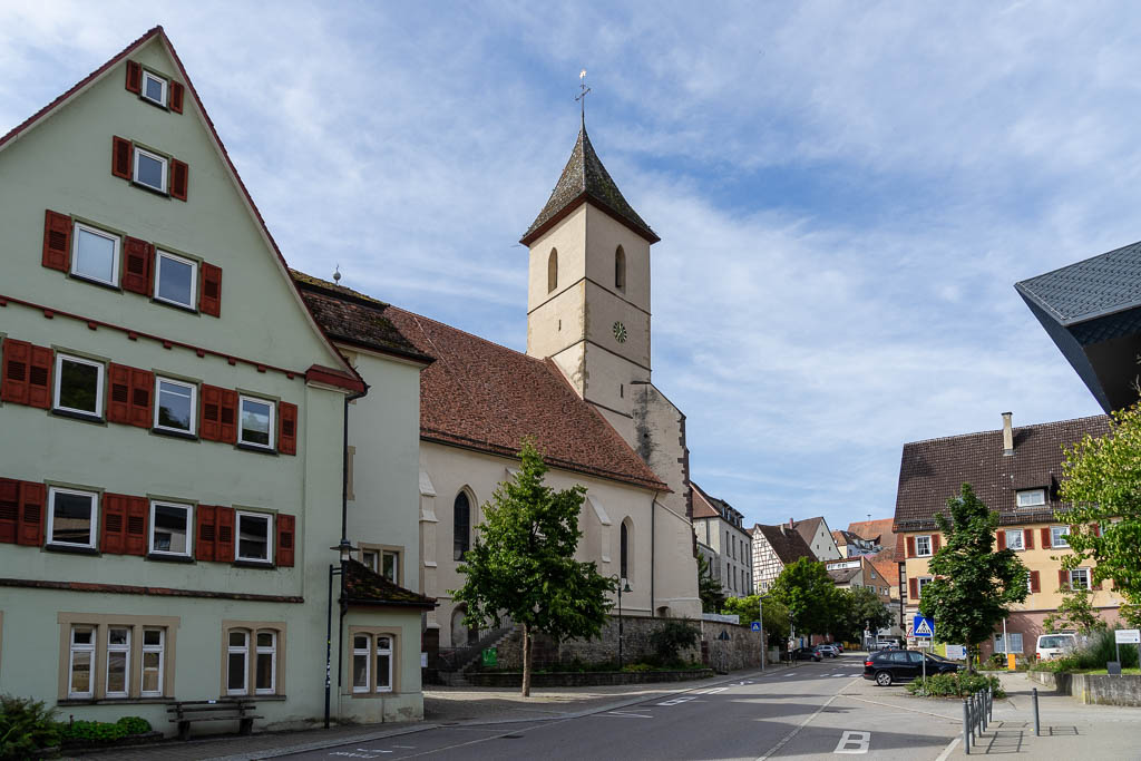 Sulz a.N., Marktplatz, ev. Stadtpfarrkirche Sulz (offen, Pilgerstempel im Vorraum).