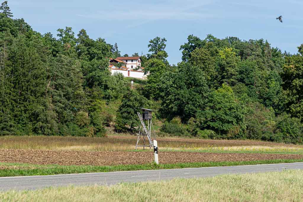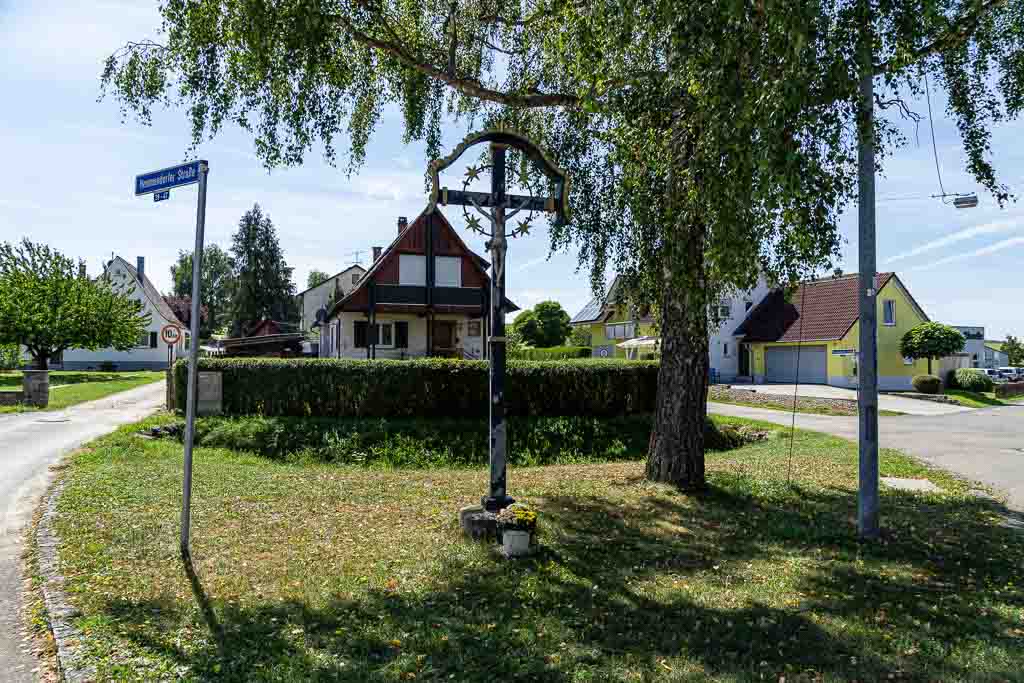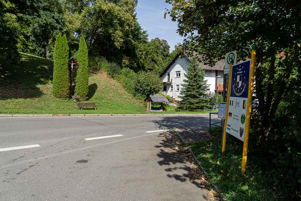 Am Ortsrand von Hemmersdorf wäre an der Kreuzung eine Jakobswegmarkierung wohl angebracht. Hier ist nur der Martinusweg ausmarkiert.