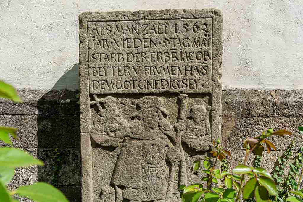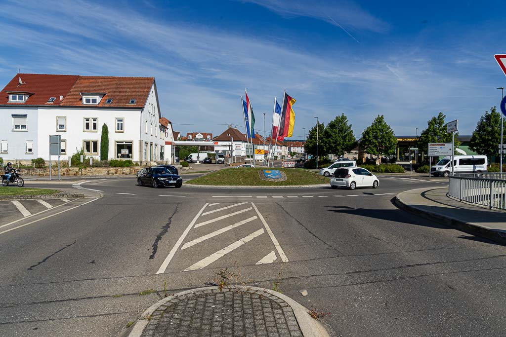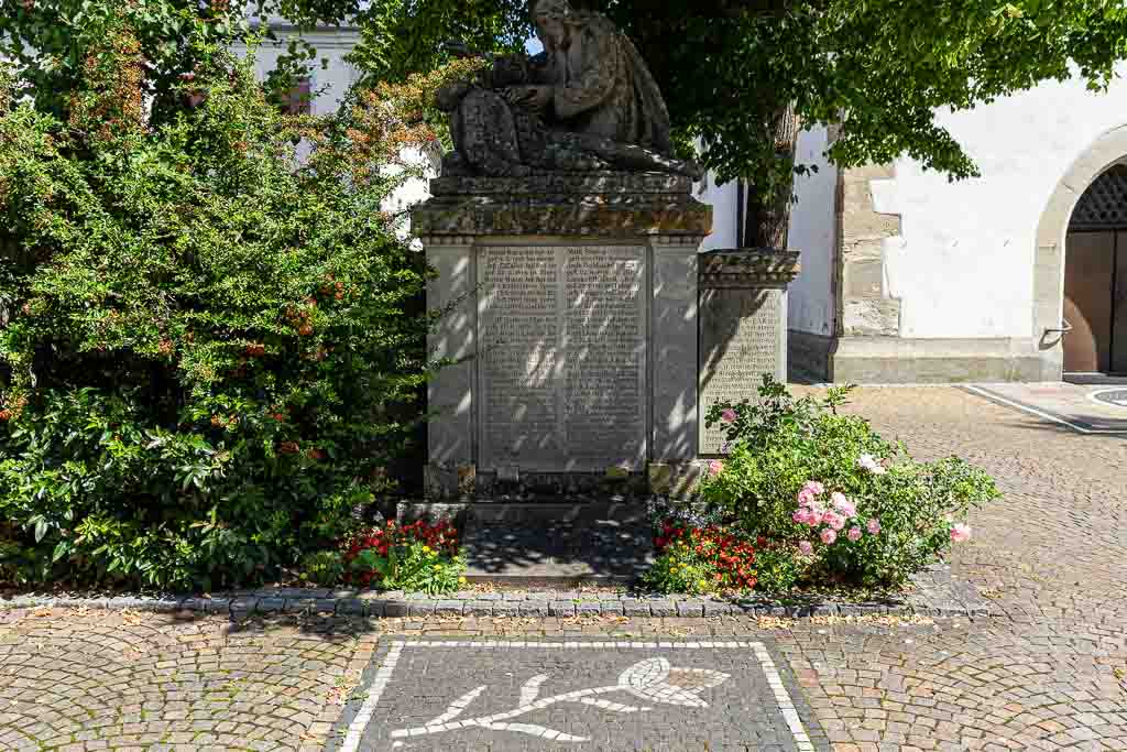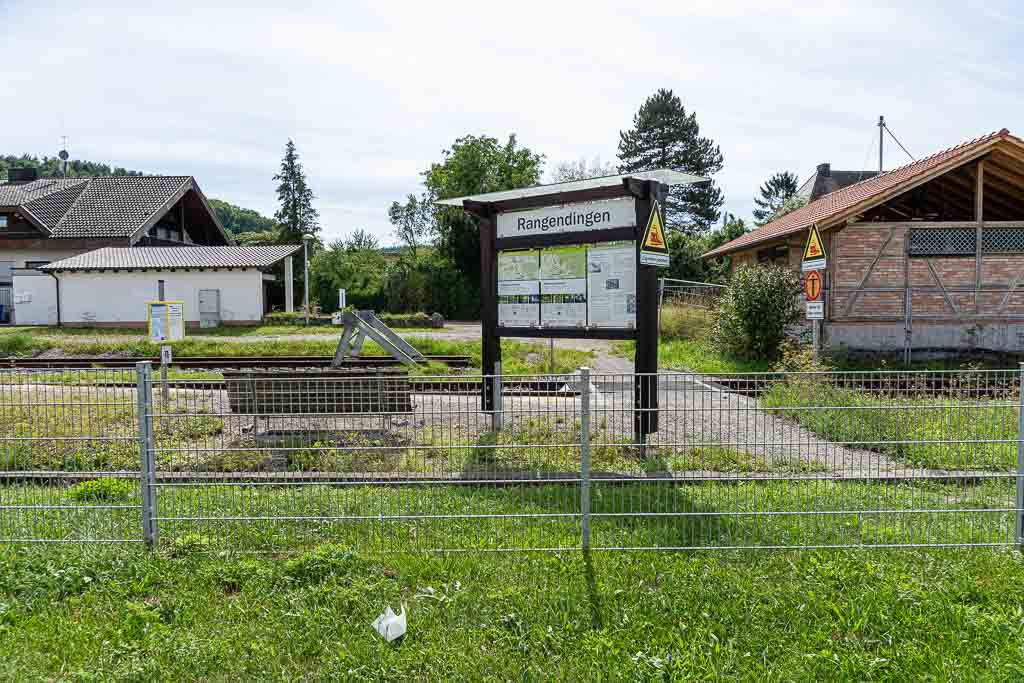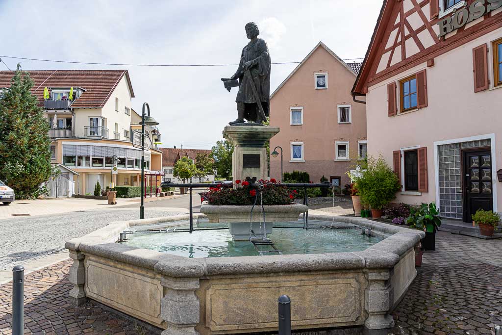 In der Ortsmitte von Rangendingen versteckt sich die Wegmarkierung auch scheu am Gasthof Rössle.