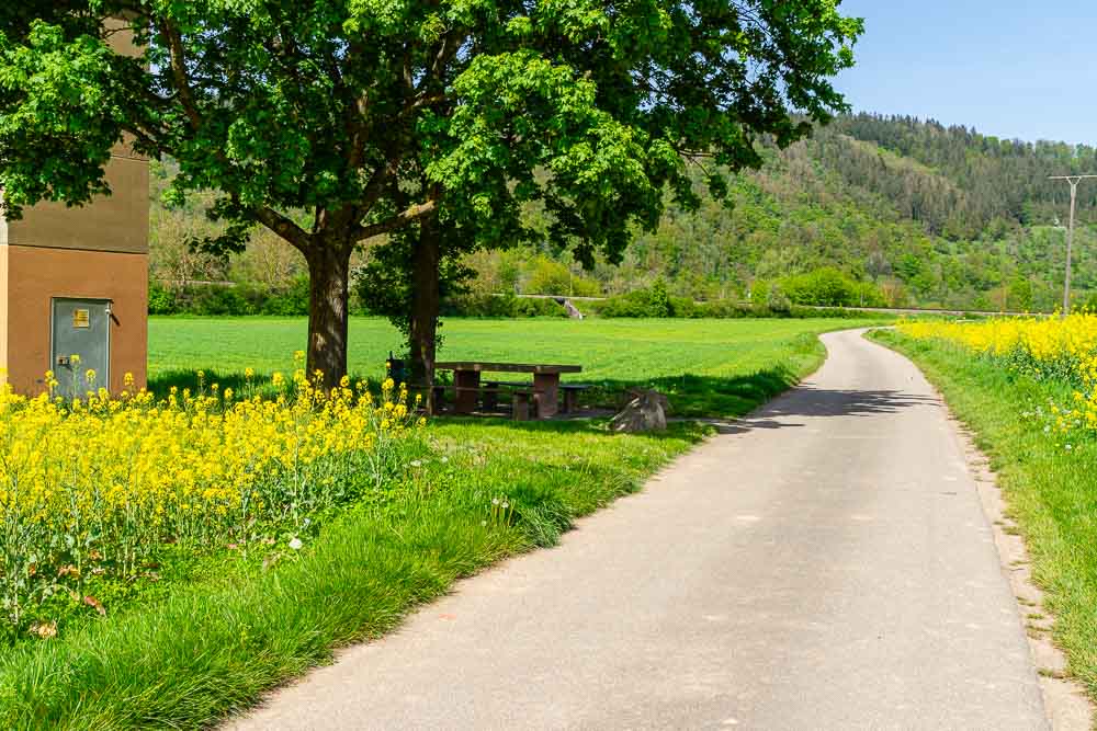 Über Flur-, Feld- und Waldwege geht es weiter, bis wir erneut den Brehmbach und die Bundesstraße B27 überqueren.
