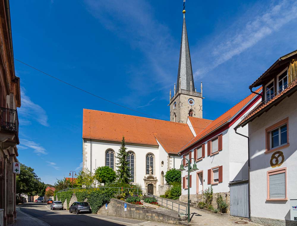 kann hier abbiegen und die kath. Pfarrkirche St. Peter- und Paul (offen) und das Schloss von Grünsfeld besuchen. Ansonsten folgen wir dem Rankweg geradeaus weiter bis wir auf die