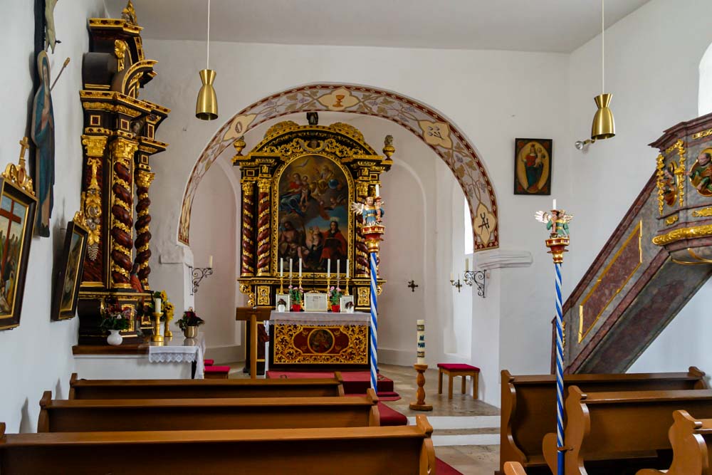 Mühlhausen, St. Jakob (offen, Pilgerstempel; ggf. Schlüssel im Haus gegenüber).