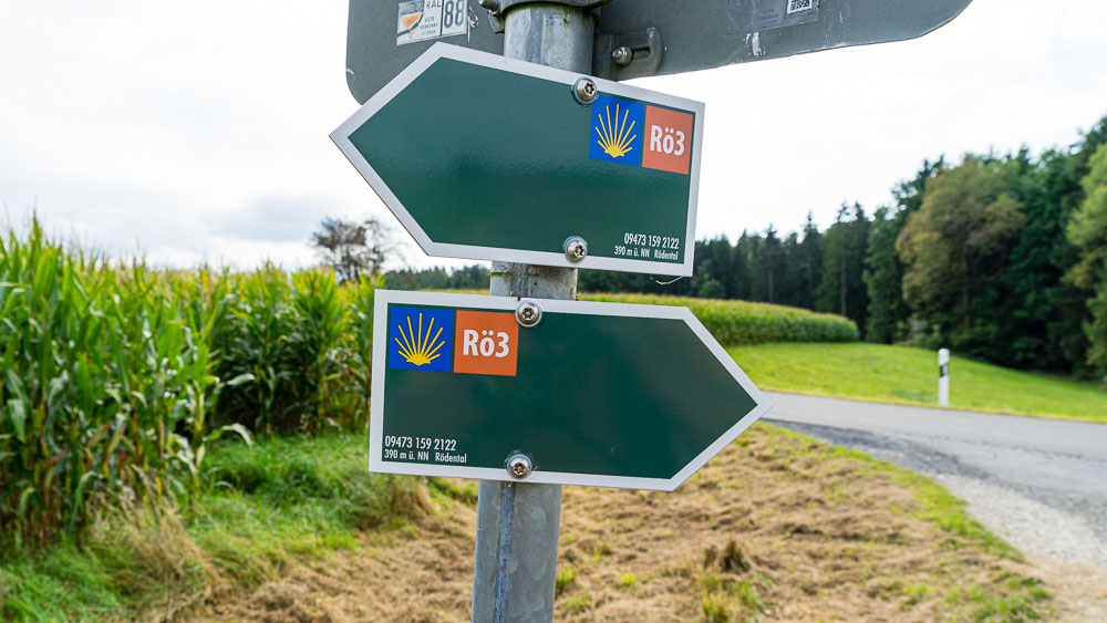 Über den Parnickelsgraben führt der Weg gut ausmarkiert nach Weißenbrunn vorm Wald. Vor der Johanniskirche (verschlossen, Pilgerstempel in der