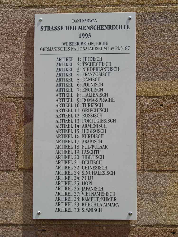 Die Straße der Menschenrechte ist Außenskulptur und Gedenkstätte zugleich. Sie wurde am 24. Oktober 1993 eröffnet und besteht aus einem freistehenden Tor und 27 in gerader Linie verlaufenden Säulen.