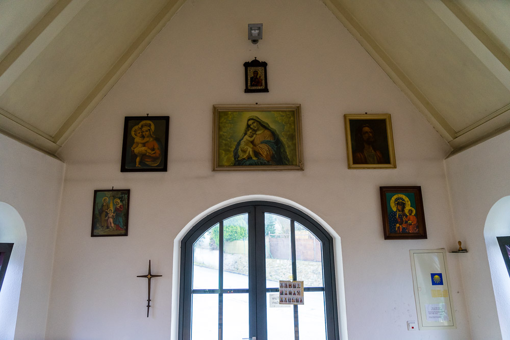 Ein Pilgerstempel befindet sich über dem Sicherungskasten in der Kapelle. Gleich vor der Kapelle findet sich das Kriegerdenkmal von Sorg.